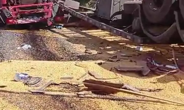 A colisão ocorreu na madrugada deste sábado (9) e envolveu pelo menos dois veículos de carga, causando bloqueio parcial da rodovia por várias horas.