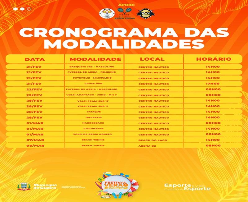 Além da arte principal com o calendário completo, o Município de Guaíra prepara conteúdos complementares com informações sobre inscrições, valores e premiações de cada modalidade, além de artes semanais e vídeos curtos que antecipam o que acontece em cada fim de semana.