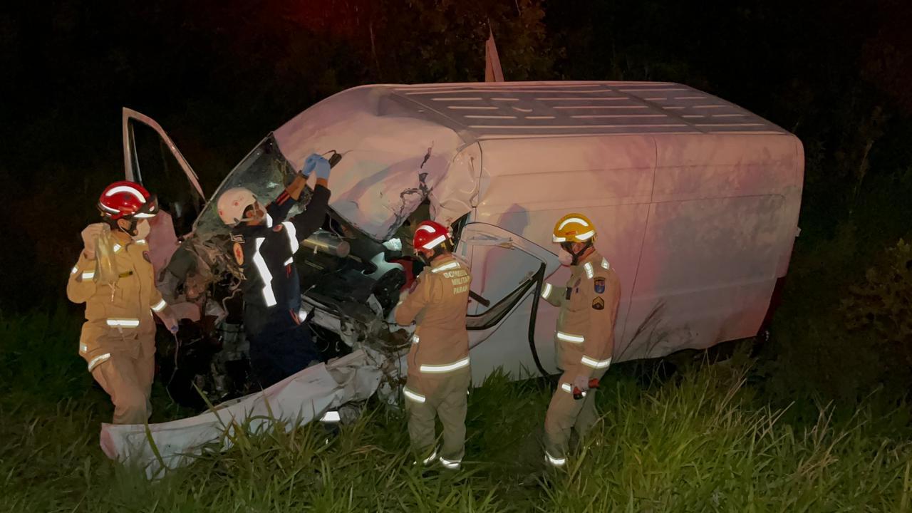 A força da batida foi tão intensa que a Van saiu da rodovia e teve o motor arrancado.