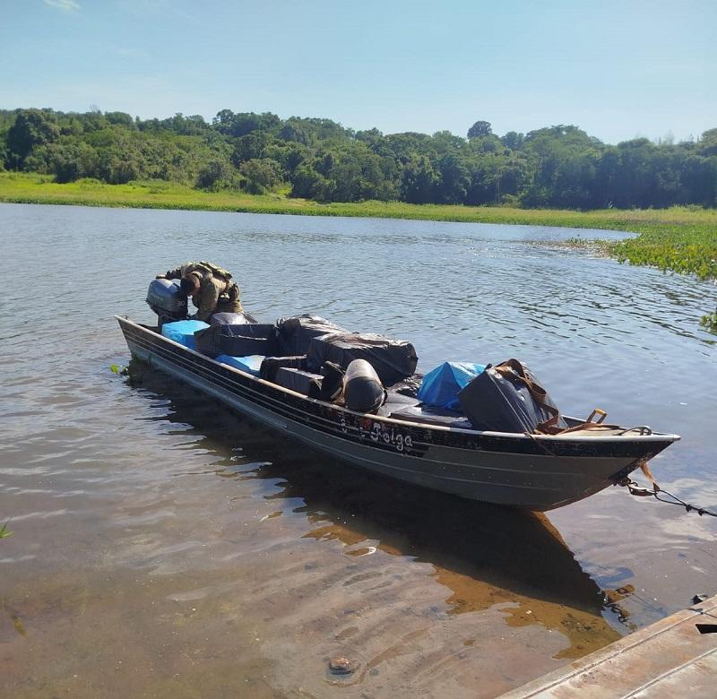 Na embarcação, foram encontrados 60 quilos de inseticidas paraguaios (Tiametoxam), 500 pacotes de cigarros paraguaios, cerca de 2.640 unidades de cigarros eletrônicos, além de 12 unidades de Lipoless, 30 unidades de 'Tizerpartida', quatro motocicletas de trilha, um barco de alumínio de seis metros e um motor de popa Hidea 30HP.